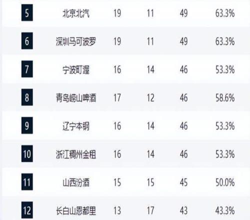 積分榜前五格局重塑,上海領跑,廣廈緊追,廣東、山東、北京三隊纏斗,而遼寧若不能在下輪對陣山西前止血,季后賽門檻或將遙不可及。