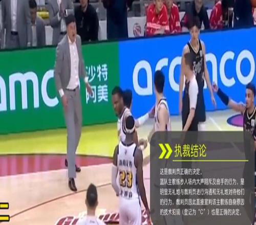 杜鋒瞬間被點燃后主裁判閆軍隨后上前吹罰了杜鋒技術犯規,并與技術代表楊茂功進行了吹罰溝通。