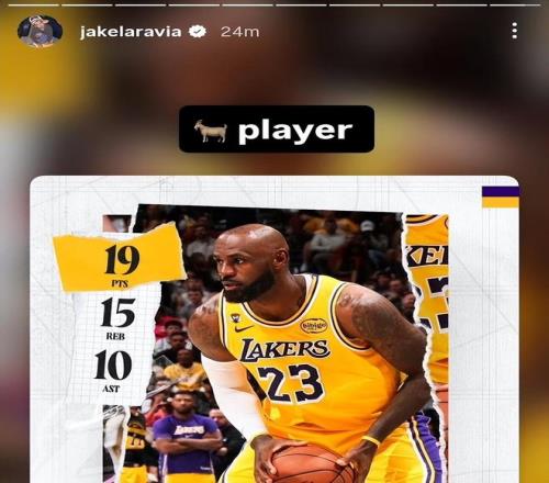 賽后,湖人的拉拉維亞更新了自己的社媒,轉發了本場比賽詹姆斯的數據,并寫道:“GOAT!”