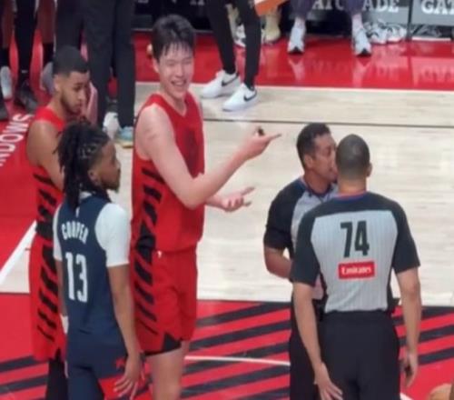 而在一次對手罰球的時候,楊瀚森要拼搶籃板,此時奇才隊的球員里斯抱摔了楊瀚森,將他摔在地上。楊瀚森當時沒有什么反應,被隊友拉起來之后還沖著裁判笑嘻嘻,仿佛是在嘲諷對手的氣急敗壞。此時,裁判各打五十大板,吹了楊瀚森和里斯各一個技術犯規。