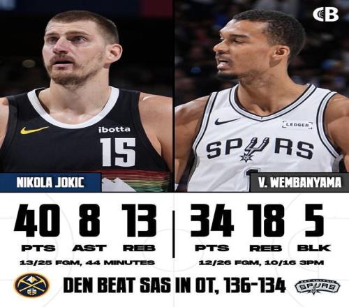 神仙打架!約基奇對飆文班亞馬,掘金險勝馬刺拯救無聊常規(guī)賽
