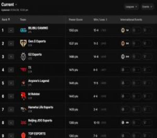 電競體育4月7報道 今日LOL全球戰力排行榜更新:奪得先鋒賽冠軍的BLG目前在世界排名第一,緊隨其后則分別是GEN以及先鋒賽亞軍G2。