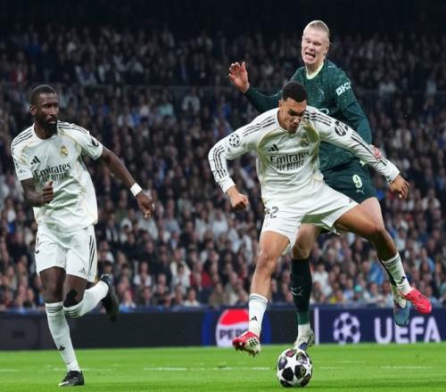 第68分鐘薩維尼奧右路下底傳中,呂迪格搶在后點包抄的哈蘭德之前,將皮球解圍力保球門不失,7分鐘之后,皇馬小將皮塔奇禁區內犯錯,給了奧賴利直接起腳的機會,好在庫爾圖瓦神撲救主力保球門不失,讓皇馬在主場成功零封了藍月軍團。