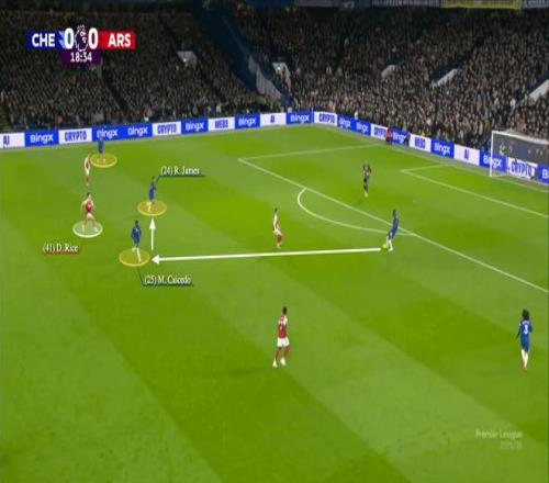 本賽季11月馬雷斯卡執教的切爾西,也曾用這套方式1-1逼平阿森納:控球時讓福法納客串右后衛,詹姆斯與古斯托交替換位,硬生生撕開了阿森納的逼搶體系。