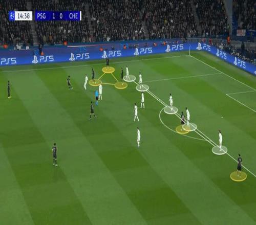 上周巴黎首回合較量中,大巴黎拆解切爾西人盯人體系的戰術則另辟蹊徑:球員先扎堆聚攏,再突然分散拉開,輔以流暢的全場換位,徹底打亂切爾西的防守部署。