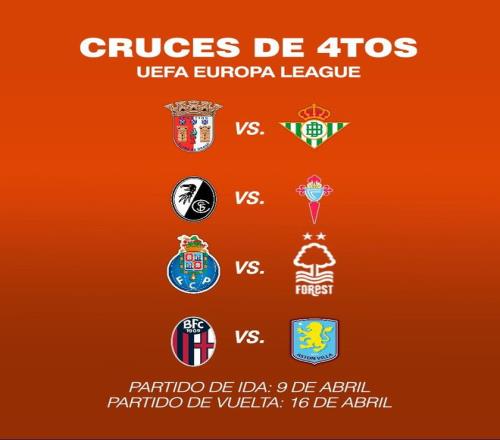 在8強出爐后,歐聯杯1/4決賽的具體對陣如下: