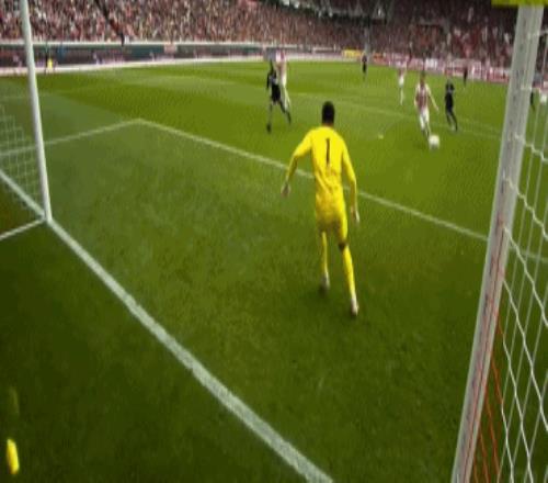 第76分鐘,奧利塞右路內切,禁區前沿標志性的兜射,直奔左上角而去,阿圖博盧飛身單掌將球撲出。