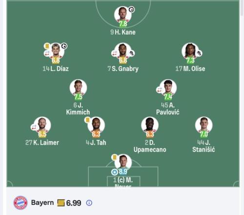就在上半場行將結束之際,拜仁率先打破僵局。第41分鐘,格納布里送出精準直塞,路易斯·迪亞斯快速插上推射破門,拜仁1-0領先。