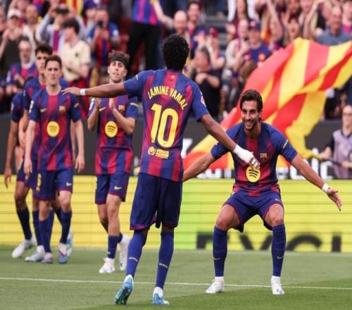 巴薩則在聯賽高歌猛進。雖然巴薩將與馬競進行歐冠生死戰,但這場聯賽依然派上亞馬爾等主力,畢竟當前情況下聯賽冠軍最為重要。結果,巴薩以4-1擊敗了西班牙人。費蘭-托雷斯在第10分鐘就頭球破門。隨后,亞馬爾助攻費蘭再進一球。下半場洛薩諾扳回一球。最后時刻巴薩接連進球。亞馬爾和拉什福德各進一球,徹底踢爆西班牙人。巴薩以79分高居榜首,領先身后的皇馬9分,奪冠形勢一片大好。