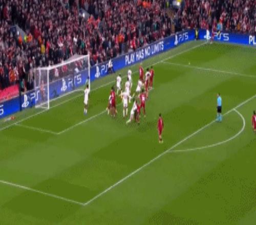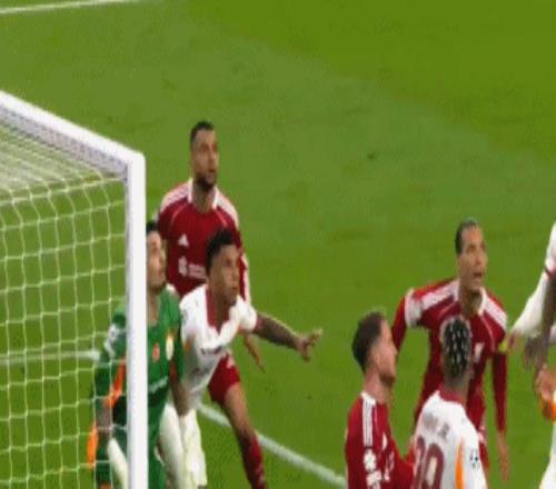 第90分鐘,索博斯洛伊角球傳中,范戴克爭頂,麥卡利斯特門前推射得手,不過裁判認為范戴克沖撞門將在先。
