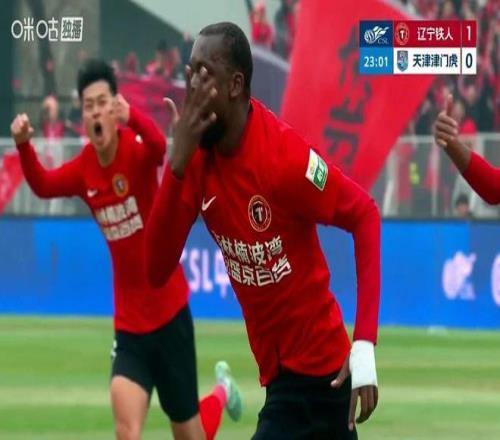 另外一場比賽中,升班馬遼寧鐵人主場迎戰天津津門虎。上半場第23分鐘,遼寧鐵人左路傳中送到禁區,姆本扎第一次射門被封堵,但隨后的補射還是將皮球送入球門,遼寧鐵人斬獲隊史中超首球,并1-0取得領先。