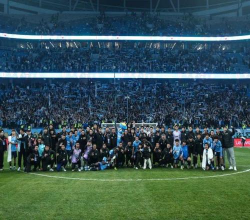 在謝場環節,英博全體將士與大連球迷再次唱響“莎啦啦”。