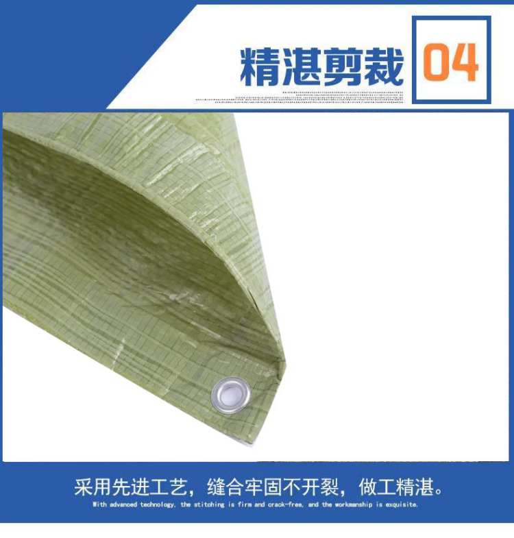 淡黃色網格色PE防水篷布精湛裁剪:采用先進工藝,縫合牢固不開裂,做工精湛。